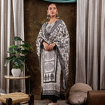 White And Black Hand_Embroidery Silk Straight Kurta And Trouser with dupatta Set