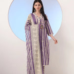 Purple And Cream Striped Straight Thread Work Kurta And Trouser With Dupatta Set