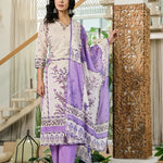 Purple And Off White Cotton Straight Beads And Stones Kurta Dupatta Set