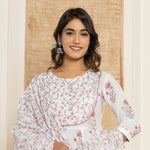 Purple And White Floral Print Piping Anarkali Style Kurta And Trousers With Dupatta Set
