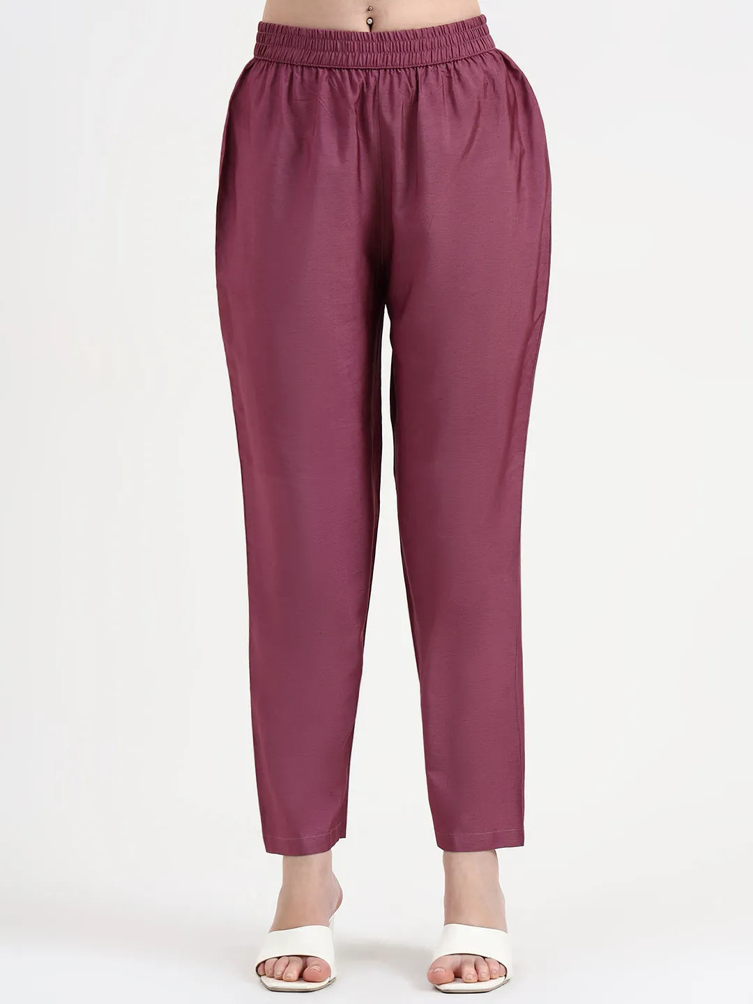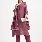 Purple Chanderi Silk Kantha Work Anarkali Kurta Trouser Dupatta Set