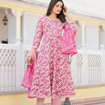 Purple Checkered Print Anarkali Kurta Trouser With Dupatta Set