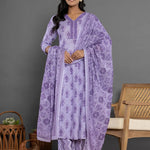 Purple Cotton Ethnic Motifs Kurta Dupatta Set