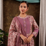 Purple Floral Print Pure Cotton Schiffli Straight Kurta And Trouser with dupatta Set