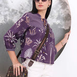 Purple Cotton Three Quarter Puffed Sleeves Top