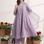 Purple Ethnic Motifs Cotton Kurta Dupatta Set