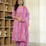 Purple Floral Print Aline Kurta Trouser Dupatta Set