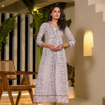 Purple Floral Print Kantha Work A Line Dress
