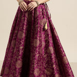 Purple Jacquard Floral Anarkali Skirt, in Jacquard fabric, Cotton Lining, Full Length, Fit & Flare, Zipper Closure, Flared Hemline and features Zari Thread Tassel Details