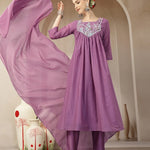 Purple Mul Chanderi Beads And Stones Sequins Work Kurta Dupatta Pant Set