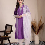 Purple Premium Cotton Kurta Dupatta Pant Set