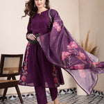 Purple embroidered Kurta with Trousers with dupatta