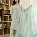 Purple Pure Cotton Floral Print Kurta Dupatta Pant Set