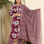 Purple Pure Cotton Kurta Dupatta Pant Set With Handwork