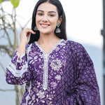 Purple Pure Cotton Kurta Dupatta Set With Thread Work Detailing