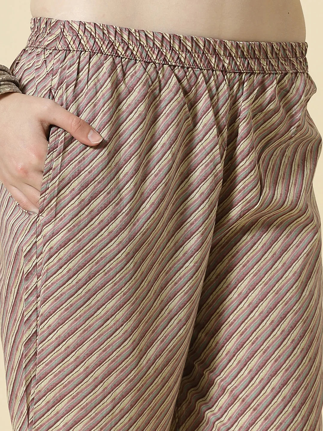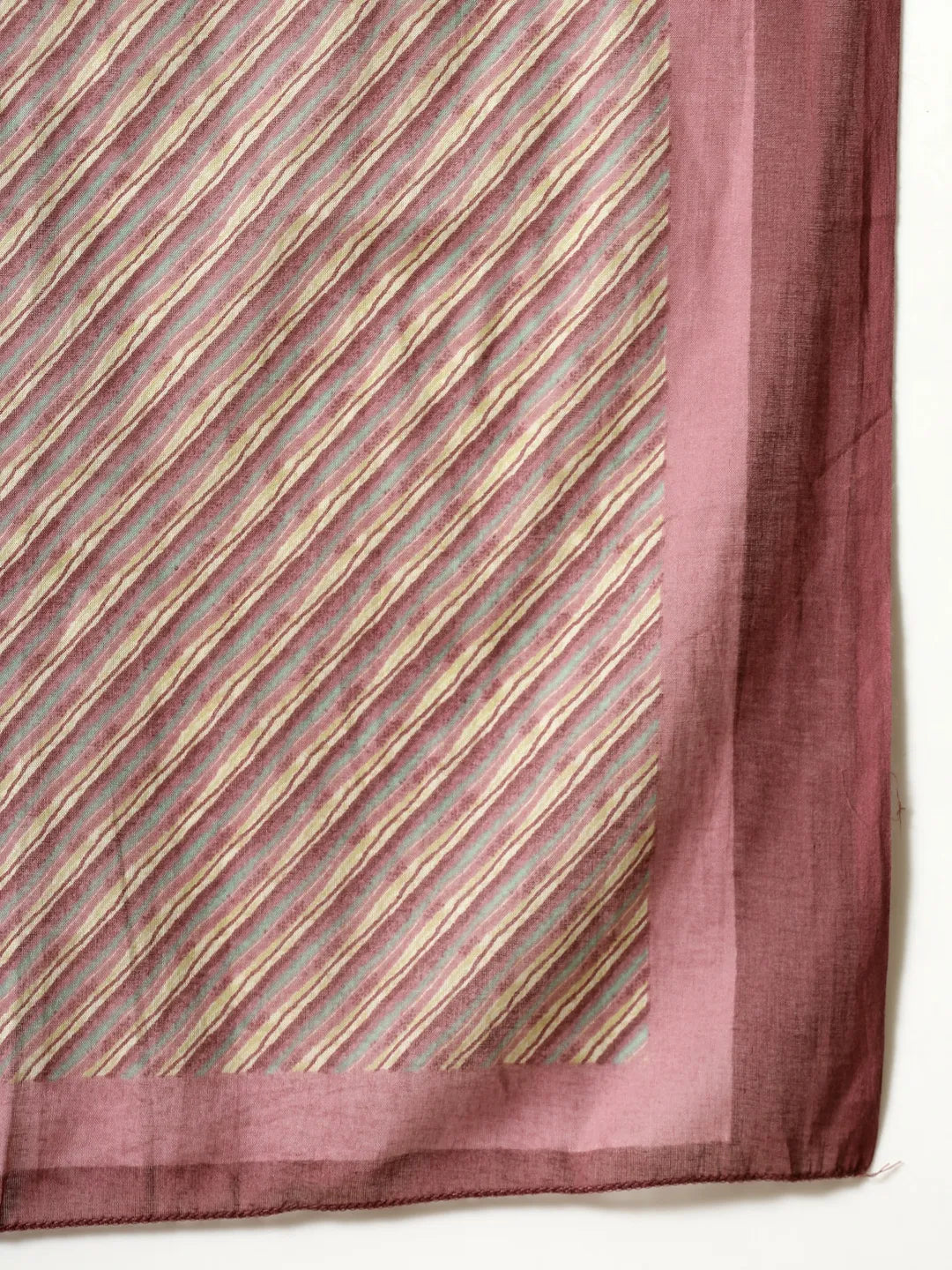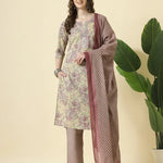 Purple Pure Cotton Paisley Kurta Dupatta Pant Set