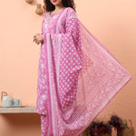 Purple Pure Cotton Thread Work Kurta Dupatta Pant Set