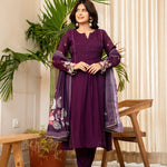 Purple Resham Embroidery A-Line Chanderi Silk Kurta Trouser Dupatta Set