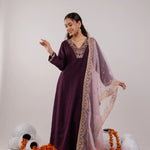 Purple Silk Embroidered Kurta Dupatta Set
