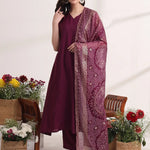 Purple Solid A-line style Kurta Trouser And Dupatta Set