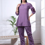 Purple Thread Work Pure Silk Blend Tunic And Trouser Co-Ord Set