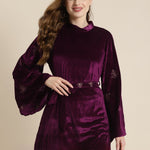 Purple Velvet Zari Embroidered Belt Short Kurta