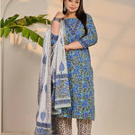 Rama Green And Blue Floral Print Straight PLUS SIZE kurta Trouser Dupatta Set