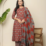 Red Pure Cotton Maternity Kurta Set With Dupatta