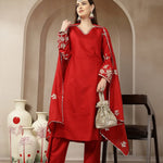 Red Vatican Silk Dori Embroidery Mirror Work Kurta Trouser Dupatta Set
