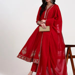 Red Silk Blend Vichitra Kalidaar Anarkali Kurta Trouser Dupatta Set