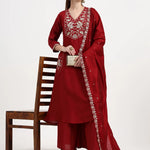 Maroon embroidered Kurta with Palazzos with dupatta