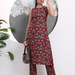 Rust Animal Print Aline Pure Cotton Kurta Trouser Set