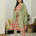 Sea Green Cotton A-Line Kurta Dupatta Set