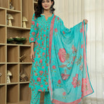 Sea Green Floral Print Aline Kurta Trouser Dupatta Set