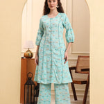 Sea green printed Kurta with Palazzos