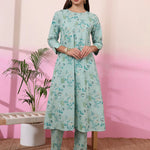 Sea Green, Blue, Gold Printed Kurta with Trousers