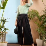 Sea Green Polka Dot Sleeve Rouching Jumpsuit, in Weightless Georgette fabric, Polyester Lining, Full Length, Comfort Fit, Zipper Closure, Flared Hemline and features Rouching Detail At Sleeves