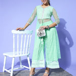 Sea green printed longline Top ,has a v-neck, three-quarter sleeves