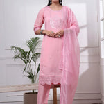 Silk Blend Pink Straight Kurta Dupatta Pant Set Cotton Lining Kurta