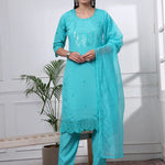 Sea Green & Silver Embroidered Kurta with Trousers & Dupatta