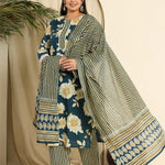 Teal Blue Pure Cotton Kurta Dupatta Pant Set With Handwork