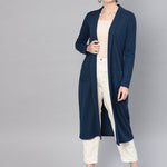 Teal Rib Longline Shrug, in Flat Rib fabric, Unlined, Calf Length, Comfort Fit, No Closure, Straight Hemline and features Patch Pocket Detail