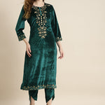 Teal Velvet Floral Zari Embroidery Kurta