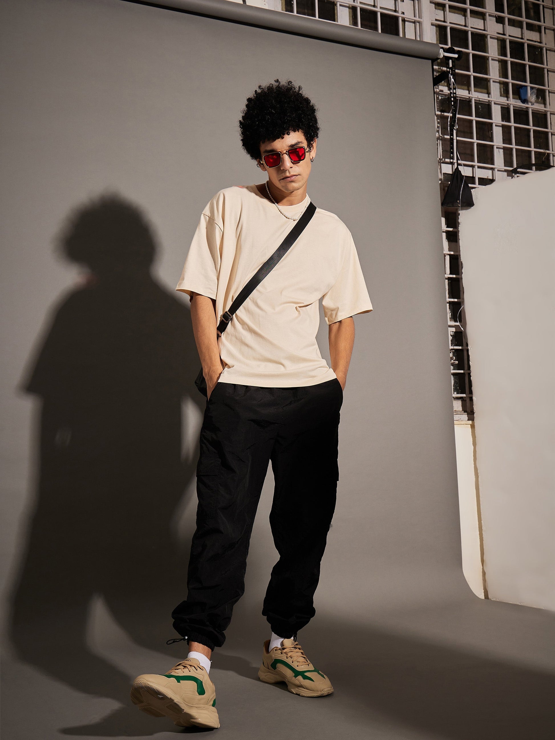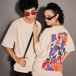 Unisex Beige Floral Back Print Oversized T-Shirt