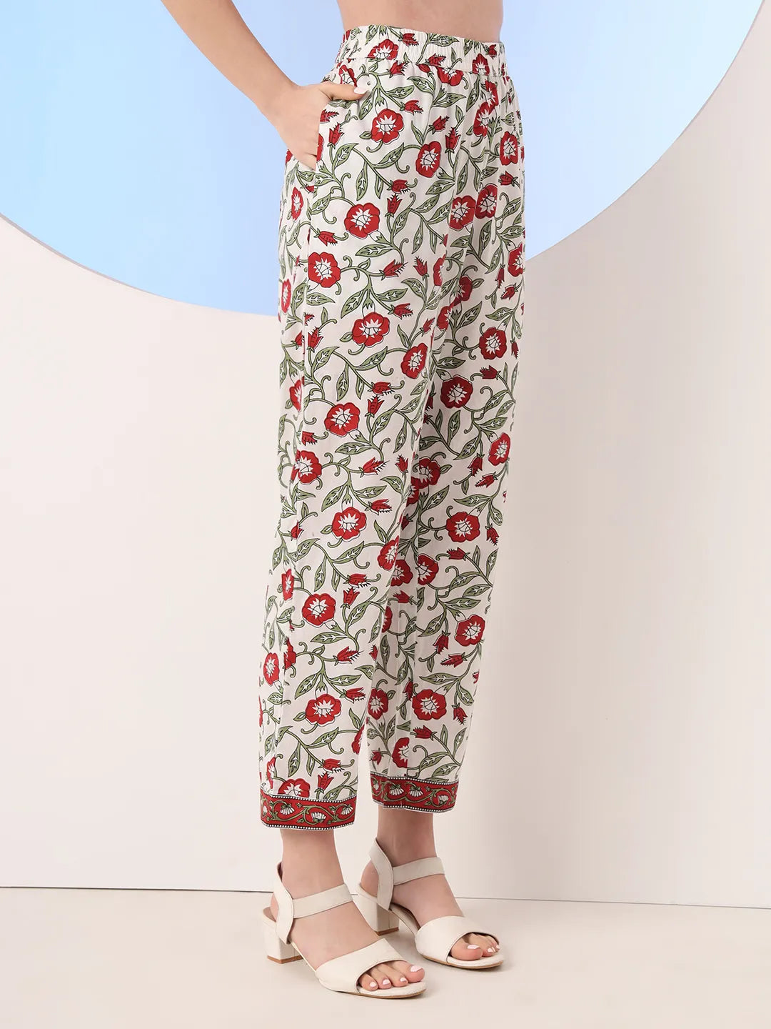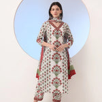 White And Green Cotton Sequins Work Straight Kurta Pant Dupatta Set