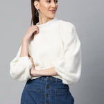 White Balloon Sleeve Faux Fur Sweatshirt, in Fur fabric, Unlined, Regular Length, Comfort Fit, No Closure, Straight Hemline and features Balloon Sleeve Detail