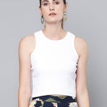 White Box Back Rib Crop Top , in Cotton Rib fabric, Unlined, Crop Length, Comfort Fit, No Closure, Straight Hemline and features Box Back Detail At Back