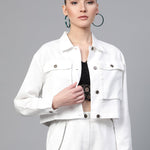 White Boxy Denim Jacket, in Denim fabric, Unlined, Regular Length, Comfort Fit, Button Closure, Straight Hemline and features Boxy Pocket At Front