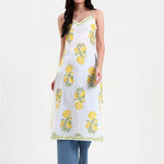 White Floral Print Cotton Straight Kurta