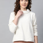 White High Neck Faux Fur Sweatshirt, in Fur fabric, Unlined, Regular Length, Comfort Fit, No Closure, Straight Hemline and features Inlay Pockets At Side